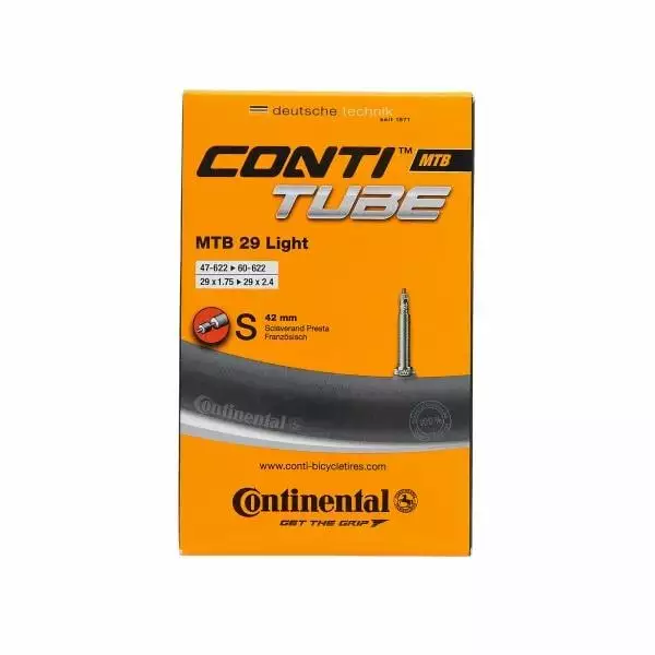 La chambre à air CONTINENTAL VTT Light 29×1,75/2,4 Presta 42 mm est aussi fiable qu’elle est légère. Ceci est possible grâce à la vulcanisation, qui permet de parfaire l’uniformité du tube et d’augmenter sa robustesse. Indispensable pour un modèle aussi fin !