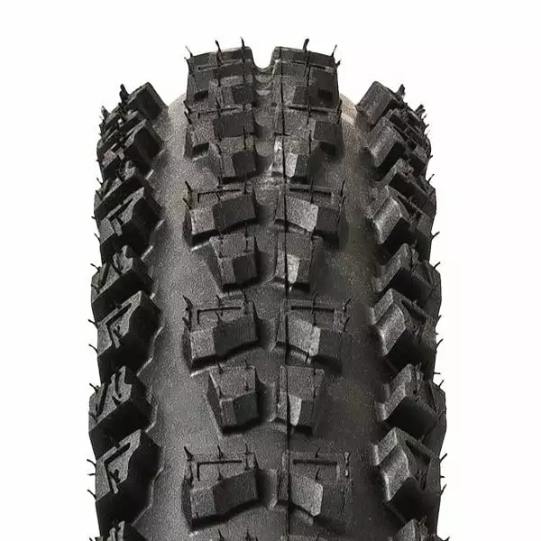 La marque française a choisi la tri-gomme Race Ripost Gravity assurant à la fois précision de pilotage et contrôle au freinage grâce à un profil directionnel et des crampons latéraux agressifs. Le renommé renfort Hardskin assure une solidité sans faille face aux déchirures, et la carcasse 66 TPI affronte les terrains les plus difficiles en toute légèreté.