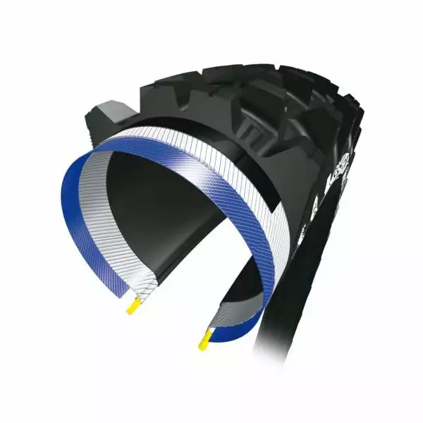 Enfin, grâce à la carcasse Gravity Shield 3×60 TPI légère et robuste adaptée à une pratique très engagée et aux renforts haute densité, ce pneu afiche une robustesse maximale.